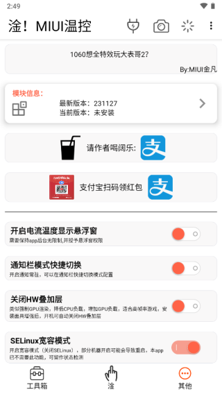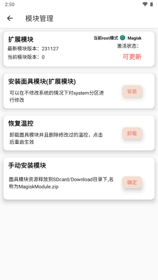 5.通过淦MIUI温控app还可安装面具(magisk)增强模块。