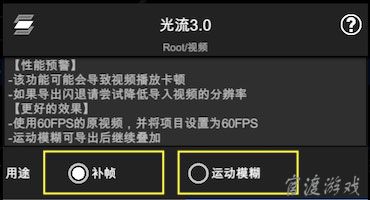 2.然后会看到如下的界面,这里可以选择用途为补帧或者运动模糊;