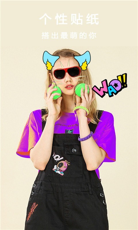 3.【贴纸萌拍】美颜相机持续为你提供新鲜的萌趣AR效果,一秒变身萌萌哒,让自拍不再单调