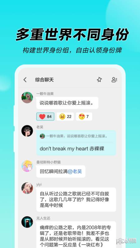 3. 多重世界不同身份:用户可以在这个平台上构建自己的世界身份组,并自由认领身份牌,增加互动的趣味性。