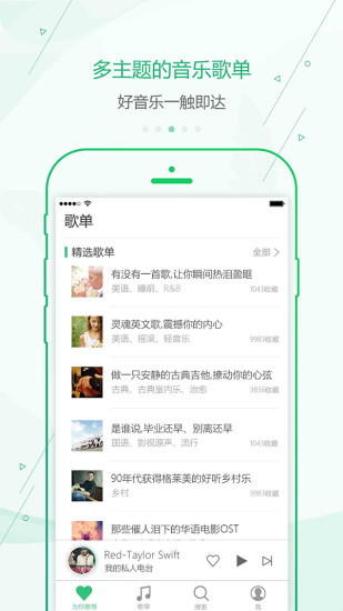2.【随时】随时进行收听喜欢的歌曲,想要收听什么类型的音乐都可以在这找到;