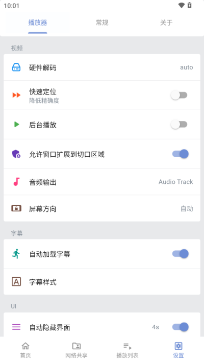 7.Reex 设置里面也很丰富,包括解码设置、快速定位、后台播放、音频输出、字幕自定义、手势设置等等。