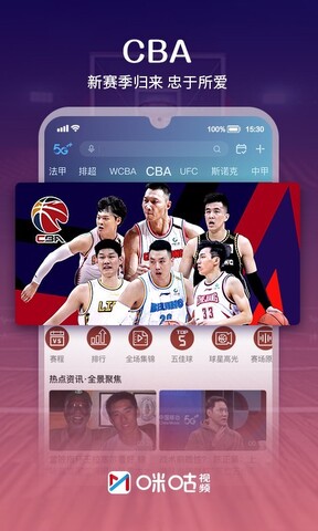 咪咕体育CBA直播APP红包雨精彩不停,直播请你看电影。