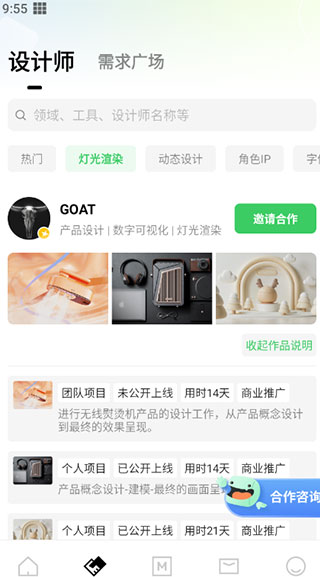 1. 由我YouOwn APP打造了一个设计师展示和交流的综合平台,为用户提供了寻找理解自己的设计师的机会