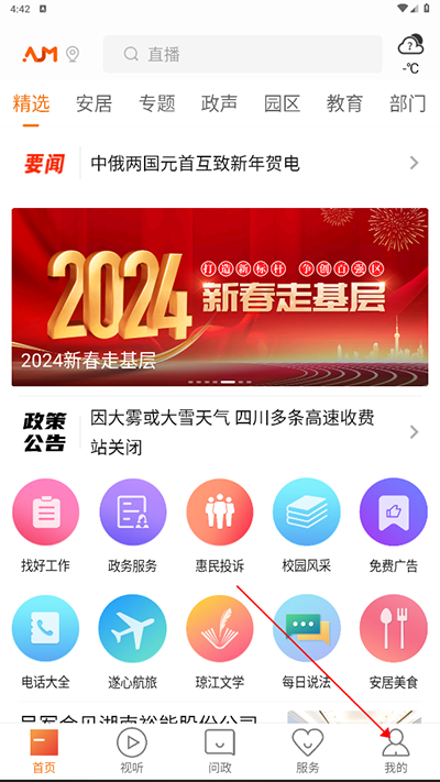 安居融媒app是一款集图文新闻、视频新闻、频道直播和活动直播等一体的新闻服务类APP,拥有政务服务、百姓问政、智慧生活等智能服务。用户能随时游览每日新闻资讯、还能轻松了解天气、 公交、道路交通信息、旅游、空气质量等便民信息,安居融媒app手机版整合归纳了众多实用服务功能,涵盖群众生活的方方面面。通过安居融媒app用户们还可以参与评论,畅所欲言表达态度!