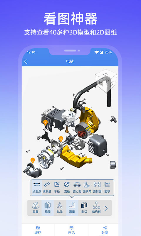 图纸通app是一款集3D图查看、图纸分享、批注图纸、图纸沟通于一体的云端软件,支持手机APP、微信、手机浏览器、PC电脑等多种应用终端,用户可以通过这款软件,轻松地将产品设计的3D模型、CAD图纸或技术资料分享给设计组成员、生产人员、售后技术人员、客户和合作伙伴,用户还可以在手机上进行批注和讨论图纸,方便快捷地进行技术沟通!