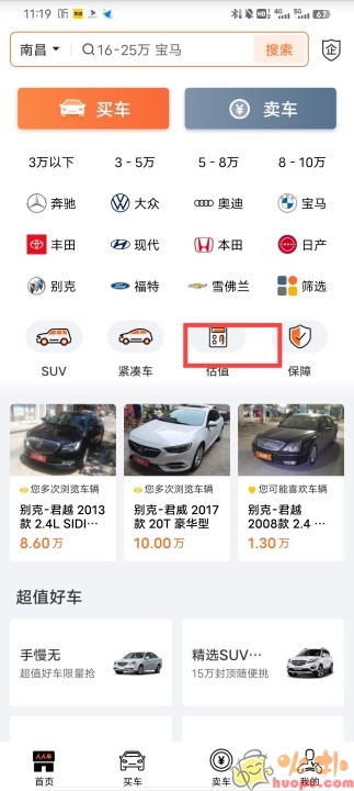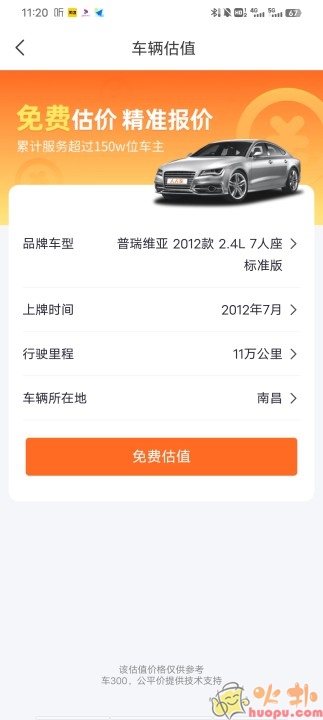 2.输入自己爱车的车型,上牌时间、行驶里程等等信息,点击免费估值;