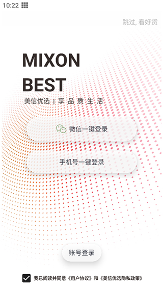 1、在本站下载好美信优选app,使用手机号或微信进行登入。