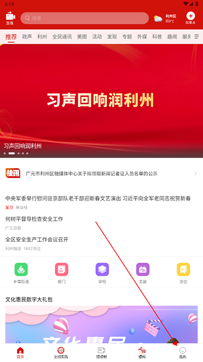 1.打开手机利州融媒app首页,点击下方个人中心;