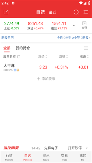 4. 自选股:支持多平台云同步的自选股功能,方便投资者随时了解自己关注的股票信息。