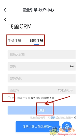 4.在注册页面也可以使用手机号/邮箱验证码进行注册。