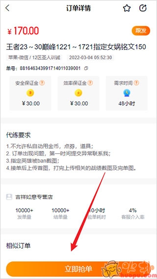 2. 订单模板:能够根据用户的需求自动生成订单模板,帮助用户筛选出大量的代练陪练需求,并且完成验收后可以秒通过