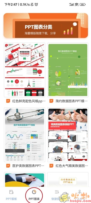 3.选择底部第二个“PPT图表”可以看到大量的图表分类,用户都可以随意的下载分享;