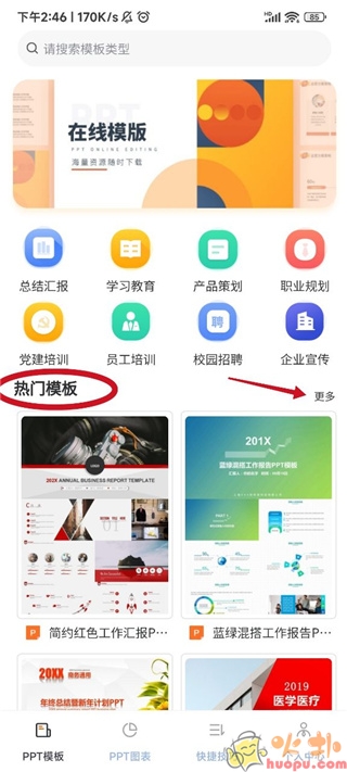 2.模板齐备:PPT超级模板app素材中间调集各行各业任务所需素材,处理满世界找素材的懊恼。