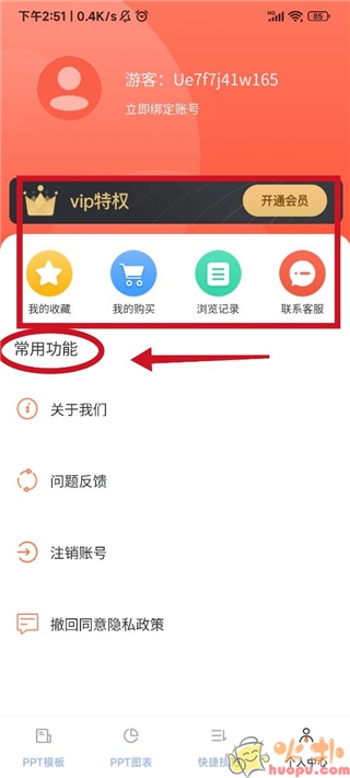 5.最后是“个人中心”,可以在这查看自己的vip特权、订单和浏览记录等个人信息以及软件的一些常用功能。