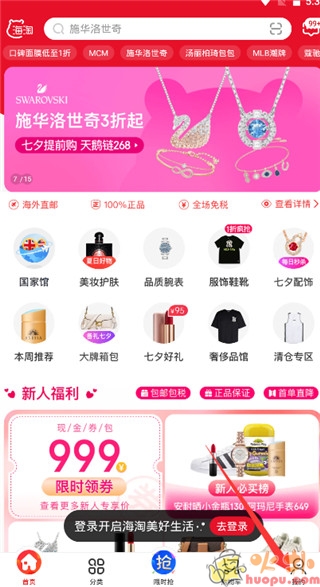 2. 海淘免税店APP提供999大额红包补贴,包括新人补贴专享的全品类红包,用户可以限时领取。