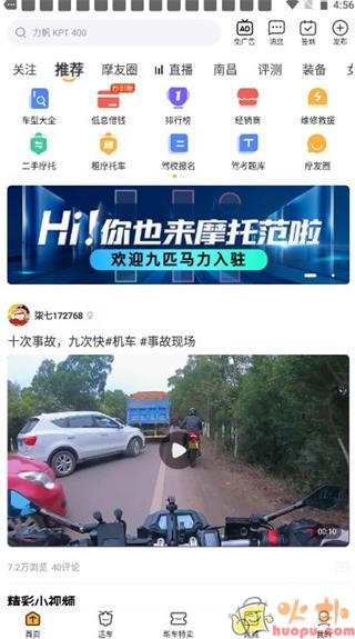 1.在本站下载安装摩托范app,在手机上打开至首页,这里可以看到各种关于摩托车的推荐内容;