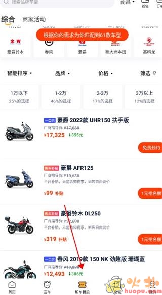 3.点击新车特卖,可以看到众多新品摩托指导价,参数配置等;