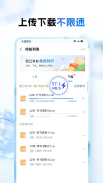1.移动云盘APP为用户提供不限速的上传和下载速度,上传速度取决于用户的网络和设备状况。