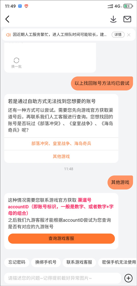 6.你可以根据你的需要来进行找回,诺还是不行则可以先向官方获取渠道号后联系人工客服进行查询