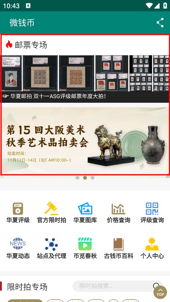 4.软件不仅支持钱币拍卖,还支持邮票和艺术品拍卖