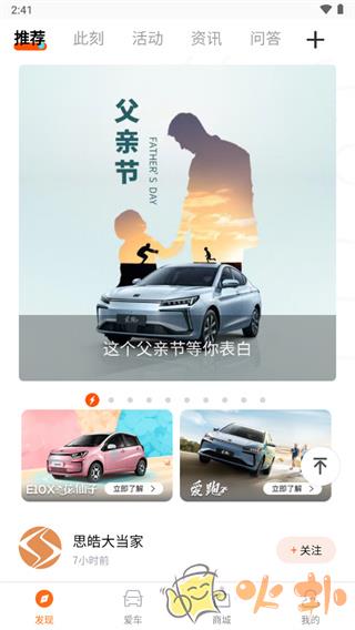 2、想要买车的用户可以点击“爱车”查看相关信息以及活动补贴啥的;