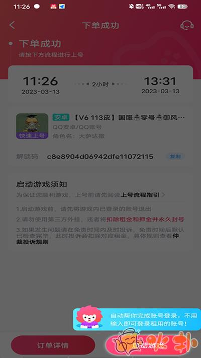 3、下单成功后,点击启动游戏,它会自动帮你完成账号登录;