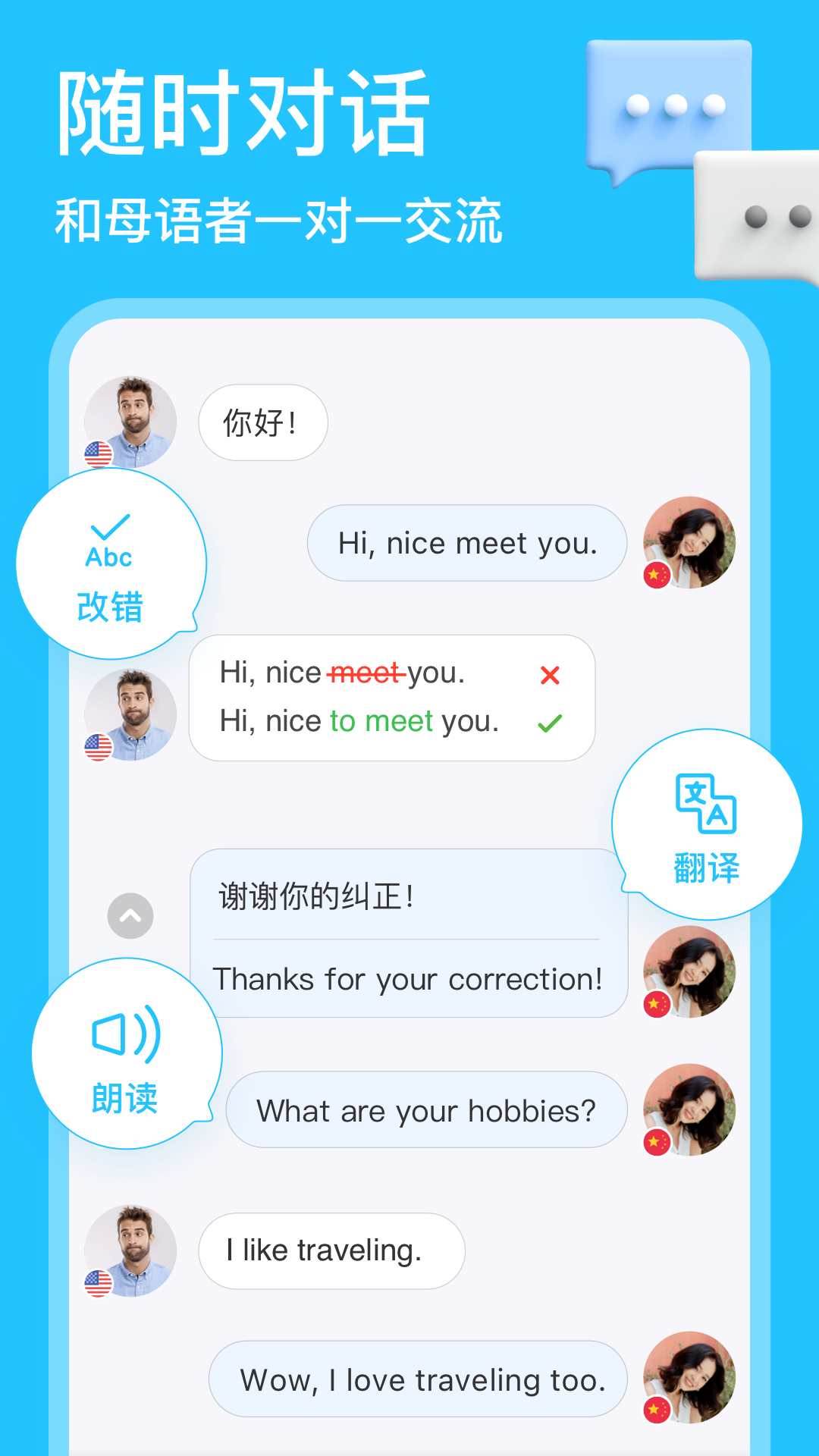 4.即时核对语法:hellotalkApp可实现即时语法核对和矫正,保证语言学习质量。