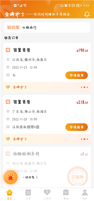 1.打开下载好的护士端app,在首页会为用户提供各种不同的订单。