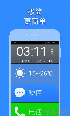 2、5级字号选择,让老人看得清。电话、短信、联系人、设置、应用列表、新闻等字号随意调节。