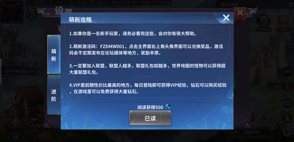 当然每个板块认真阅读完即可各领取500钻石,这些钻石可以让你后续购买碎片、召唤卷、碎片等物品,预支后续游戏详情介绍,那就坐等我下回分解啦!!!!