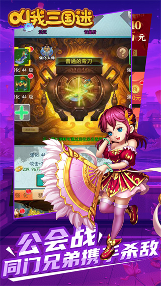 《叫我三国迷》是一款别具一格的回合制手游,它以三国时代为背景,通过挂机的形式,让人轻松享受游戏的乐趣。画面吸引人,玩法创新!游戏中每个武将都有自己专属的Q版形象,而且游戏的操作非常简单,让人很容易上手。此外还有众多令人震撼的坐骑与翅膀、超级美丽的外观系统等你来挑战!其他还有各种强大神兵、法宝、宠物等功能,组成了策略性强、可玩性高的游戏系统。玩这个游戏就像进入了真正的三国时代!这款游戏的特色就是玩家可以通过不同的武将组合来打造出无数种战斗策略,让战斗变得更加有趣!叫我三国迷是三国迷必玩的游戏之一,各位小伙伴们赶紧来试试吧!