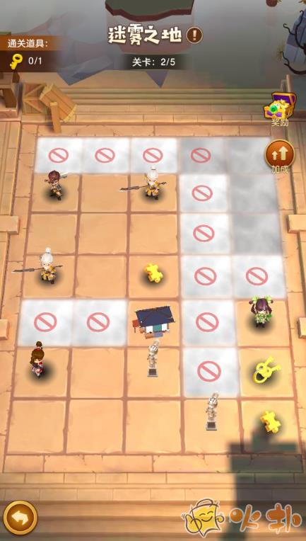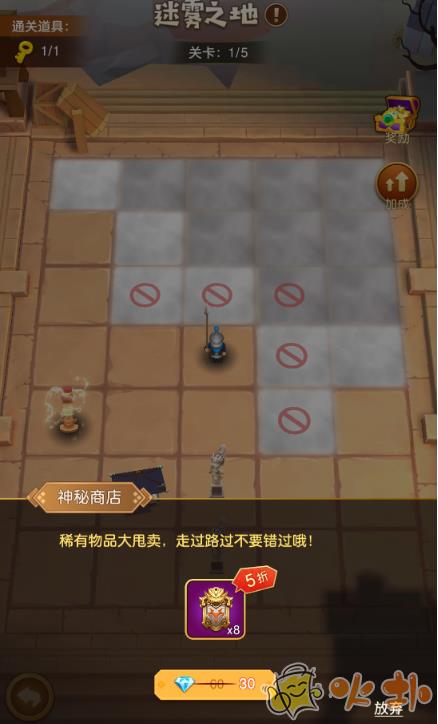 通关规则:迷雾境地共设为5个关卡。每轮关卡共有35个格子,每个格子都会触发随机事件,通过探索翻开迷雾格子找到到通关钥匙,即可通往下一关卡。最后有一个关卡为BOSS关,需打败BOSS才能成功通关。