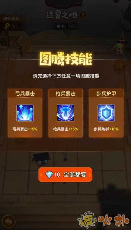 触发图腾技能会出现3个技能选择,可任意选择一项技能,并挑战拦路武将,胜利即可获得丰厚奖励啦~