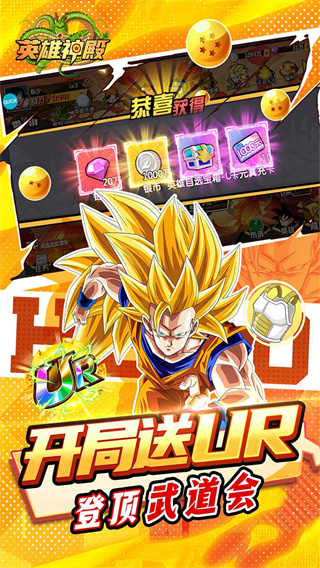顶级UR英雄自选,百抽,每日在线赠送超多龙珠币,等价值代替人民币任意兑换稀有资源;