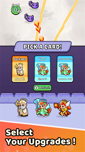 1、选择正确的卡牌升级,在海浪中生存并赢得战斗。在这个游戏中,每个决定都很重要。所以,要小心。