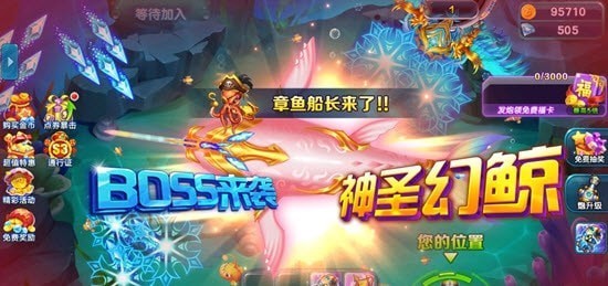 2、你可以利用不同的捕鱼神技去对抗强大的鱼王大BOSS,各种劲爆无比的道具等你来收集。