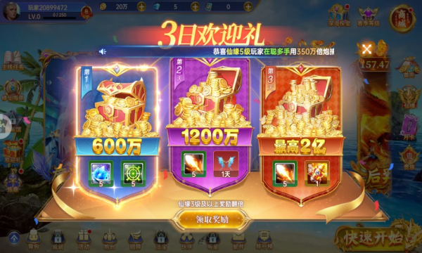 2、打开圣贤书可获得随机金币奖励,受仙缘等级加成。
