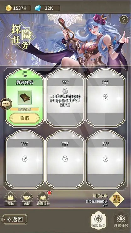 4、随着接取的任务越多,相应的探险栏数目和能接取任务的品质也会逐步上升.
