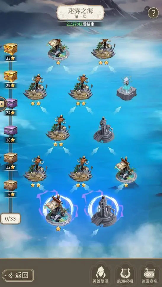 2、玩家击败对应的敌人可以获得星级和“迷雾之晶”,星级每达到一定数量时,玩家可以在开启对应的星级宝箱。所以在寻宝的路途中也要注意自己的星级获取数量哦!