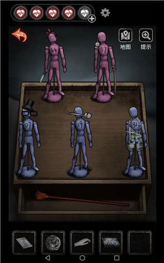 1、检查室,点击玻璃里的机器,木偶放进去,外面电脑显示两个图案。