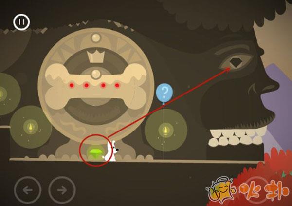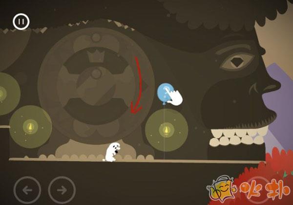 2、这个关卡在第一章中属于是比较难的了,主要就是旋转石盘然后组成一个骨头的形状。然后就会掉下一个绿色的钻石,然后把钻石放进巨人的眼睛,然后巨人的嘴就会张开,米皮就可以通过了。