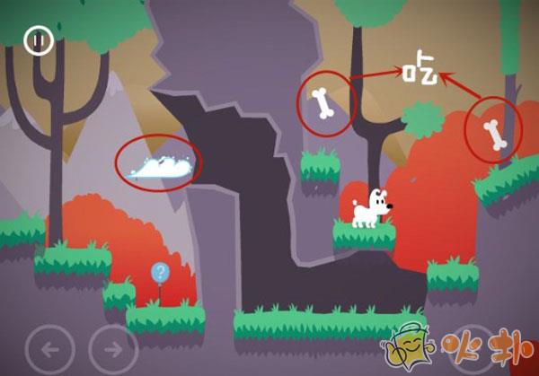 1、第1章是所有章节中最简单的,而且是会有提示的。基本上是碰到什么就要吃什么。比如电灯泡啊!骨头啊!还有面对过不去的坎,要巧用云朵。