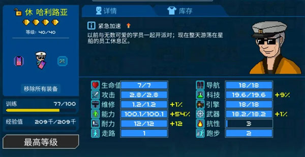 所以不需要投入太大精力财力去购买腿部、头部类的科技、武器、攻击、导航装备。7星没有类似装备槽位的船员,或相关船员不常用。