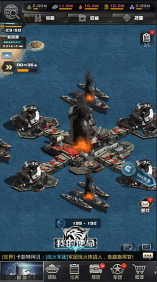我的使命官方正版是一款以现代战争为题材的策略手游,该游戏采用航母承载部队的形式将海陆空完美地结合起来,你的部队将由一艘航母承载,征战四海在游戏中,你将扮演一名英勇的战士,能够驾驭从一战至今的各类知名战争武器,组成一支无懈可击的部队,征战四方。除了全球征战,你还可以组队参与海盗打击、矿产开采、军团互助和邀请等多样化玩法,尽情享受游戏带来的无尽乐趣。