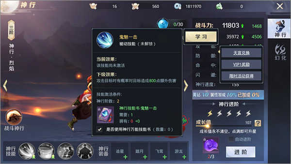 神行升阶到一定的等级后会激活对应的神行技能,能带来更高的战斗输出和状态buff。还能通过技能书进行升级,进一步提高技能的属性和效果。
