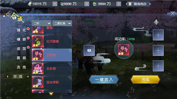 4)红装2星装备可用3件同品类橙色3星装备合成,红装3星装备可用3件同品类红色星装备合成,装备最高星际为3星,随着星级提升,装备属性有质变的提升