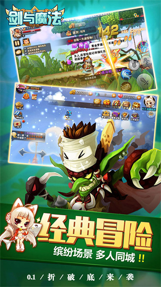 剑与魔法(首续0.1折)是一款Q萌可爱的横版动作角色扮演手游。在2D横向卷轴呈现的神秘冒险世界里,玩家可以体验到精彩的动作和自由的组合技能。在战斗历险的过程中,可以随意跳跃、攀爬甚至是飞翔,达到不同关卡的要求。此外,玩家还可以和上百种精灵宠物并肩作战,个性装扮则包括了超过50种时装和30种翅膀。在这个充满想象力的游戏世界里,每个玩家都是独一无二的主角,享受着独特的游戏体验。