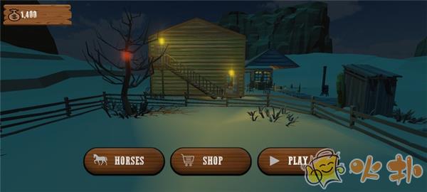1、下载进入西部牛仔模拟器游戏,点击"PLAY"开始游戏;