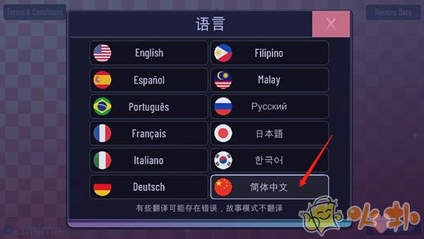 1、下载安装游戏,游戏初始语言为英文,点击右下角进入语言选项可以更改设置;
